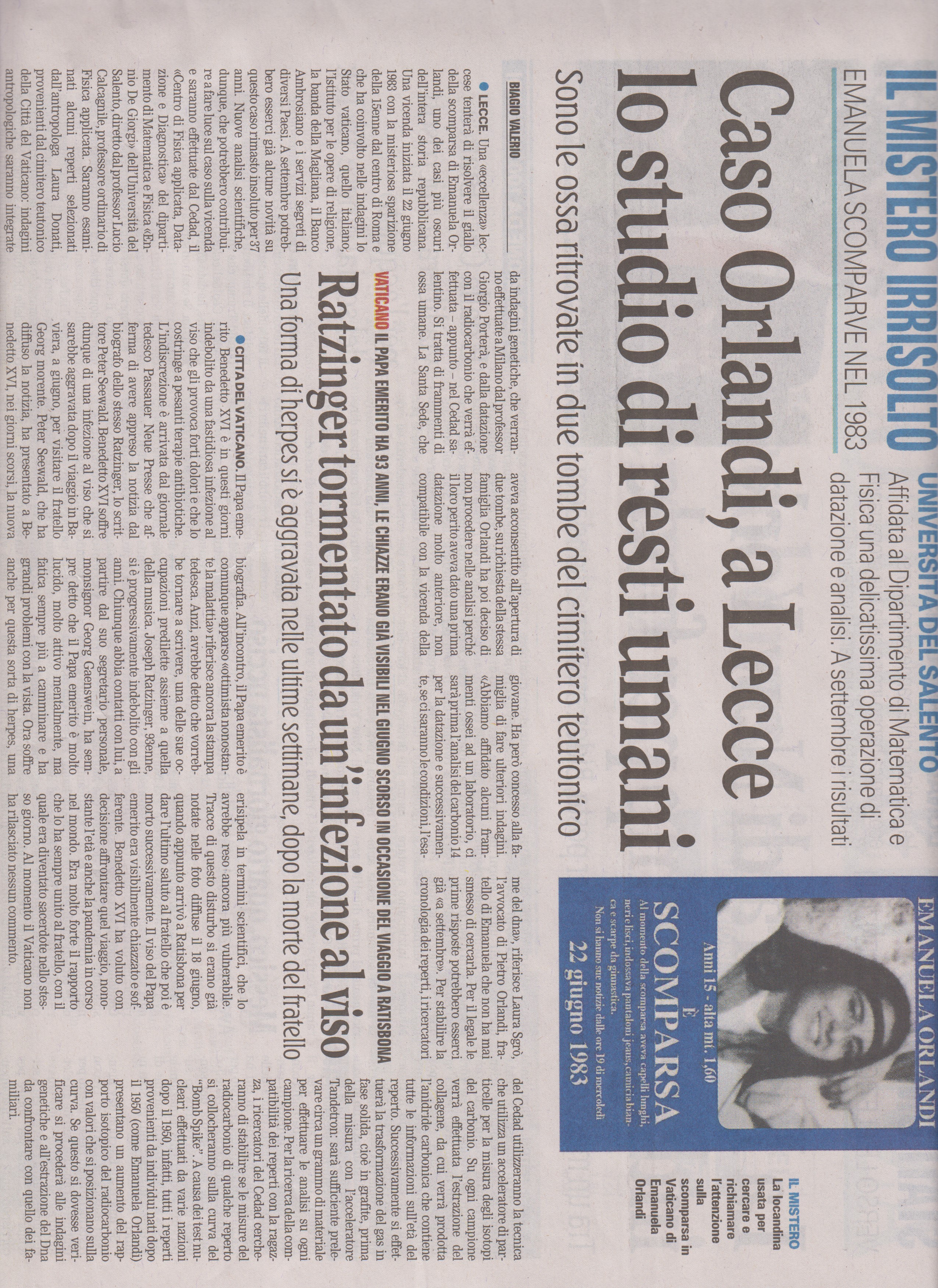 Calcagnile:Orlandi, possiamo svelare un segreto